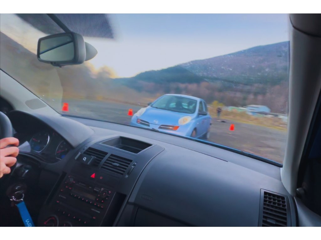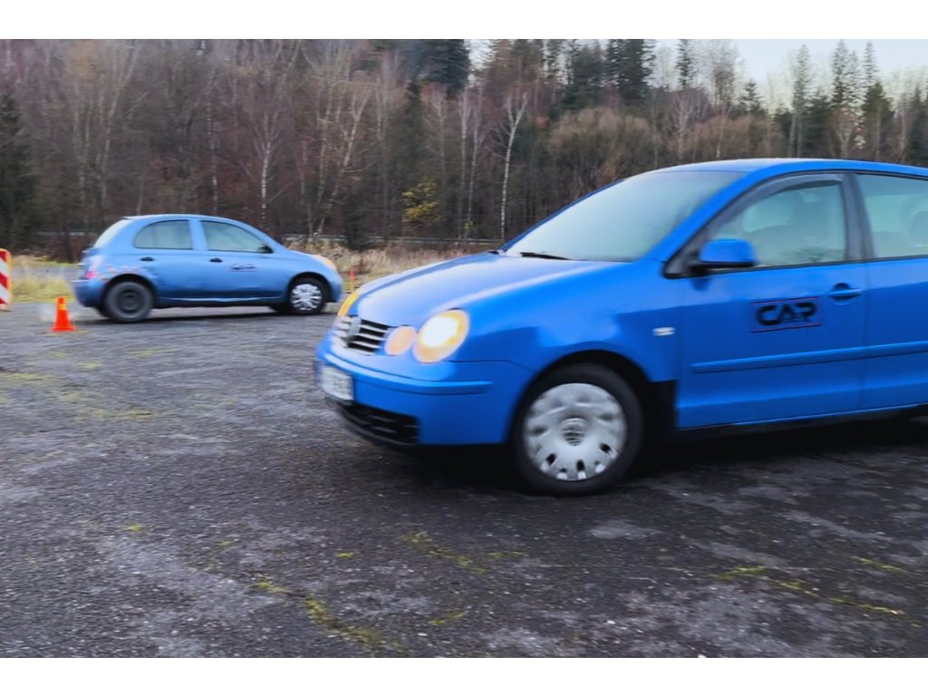 - v druhém bloku ( cca 15 min) - sedneš do upraveného auta jako řidič, a tvým úkolem bude dle pokynů několikrát projet vymezenou trať. Někdy to půjde, někdy už ne, a ty budeš muset reagovat. Vše si zopakuješ v různých rychlostech, abys jízdu na simulovaném sněhu, co nejlépe zvládal/la na silnici a v reálných sněhových podmínkách.
